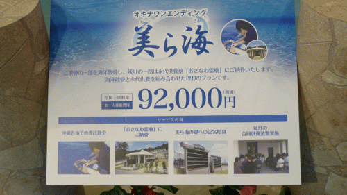 これは、故人の遺志により、散骨を行う時やその後に故人が消えてしまったと喪失感を持たれるご遺族もいらっしゃると聞き、遺骨の一部を沖縄の永代供養施設にて、納骨・永代供養を行えるようにしたサービスです。